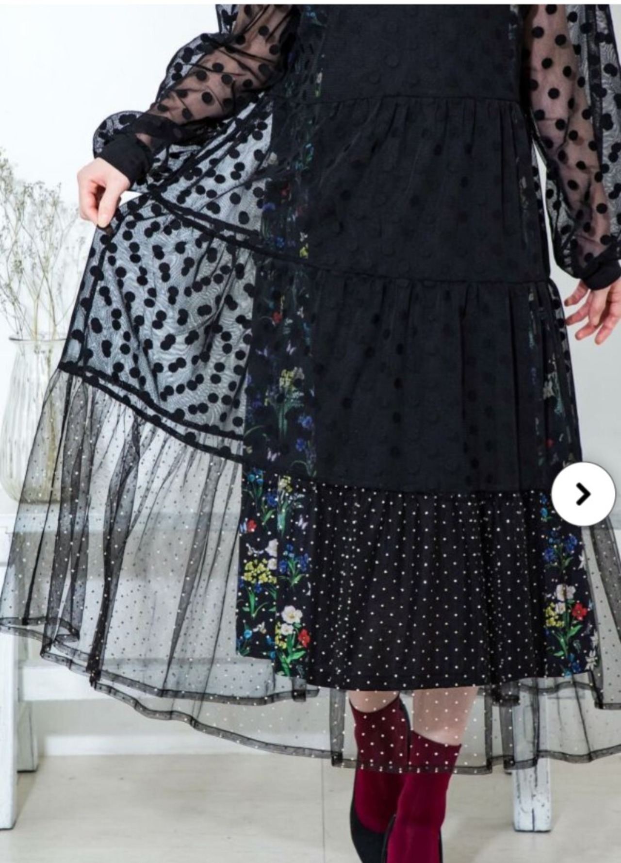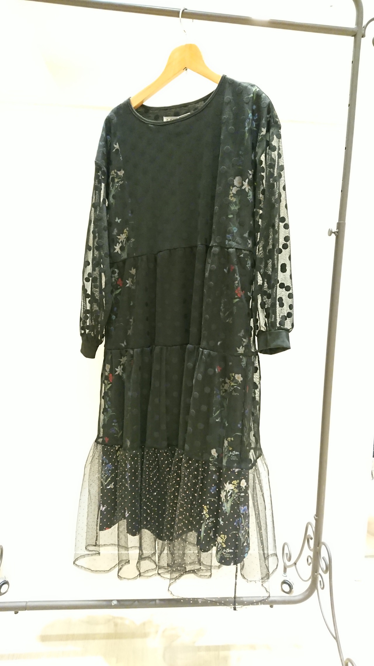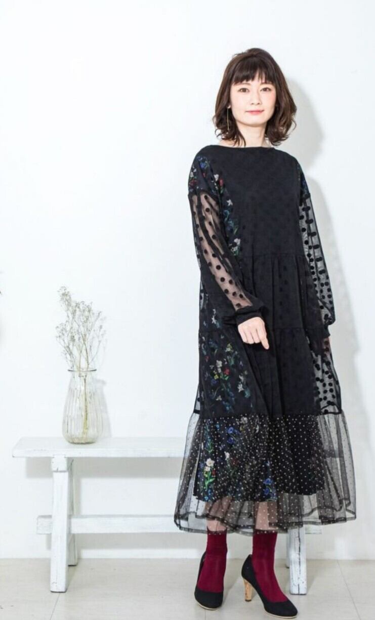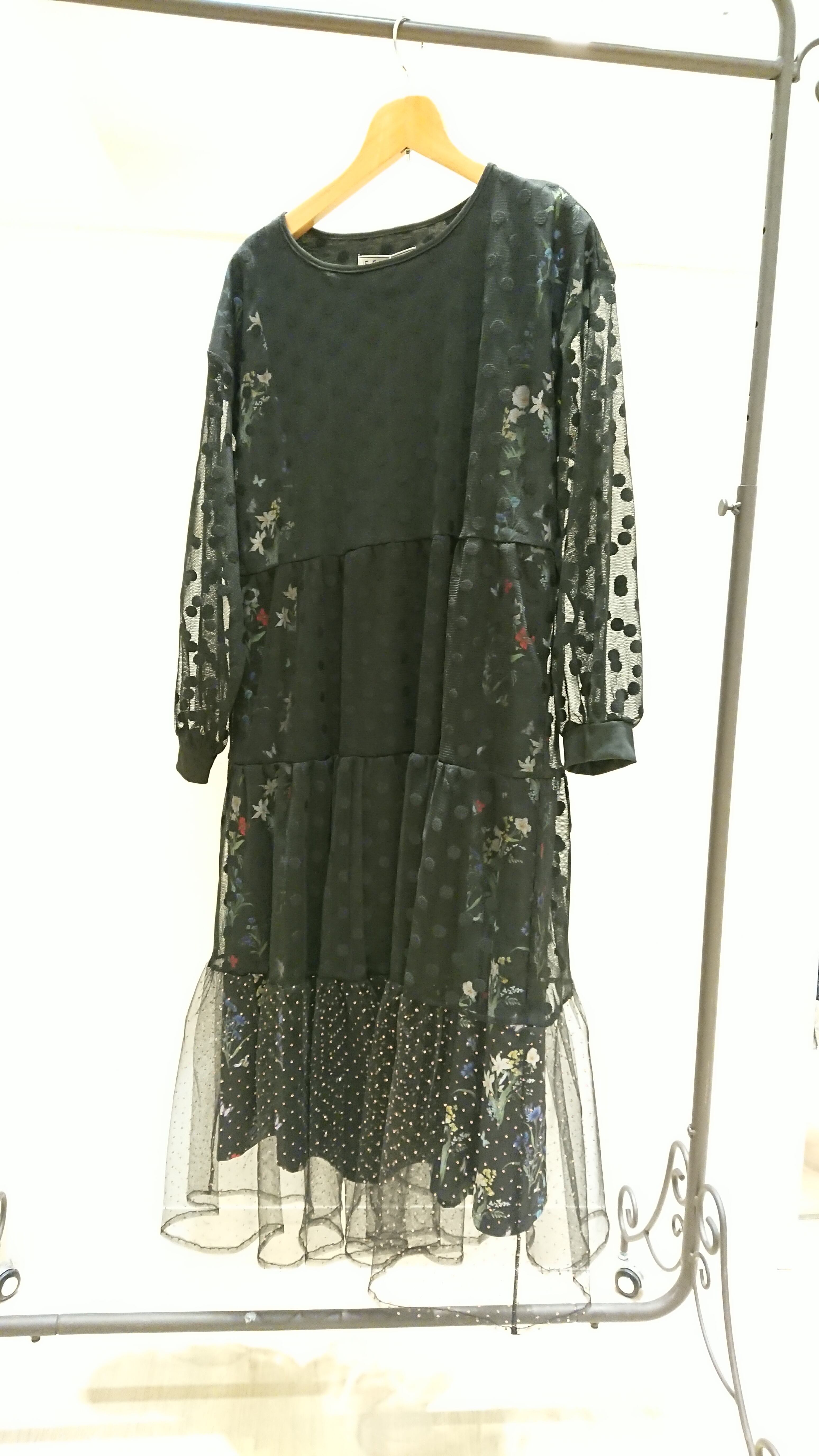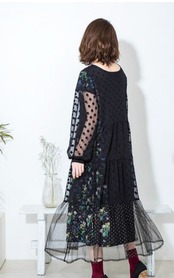 isSCOLAR 花蝶柄ドットチュールmixワンピース