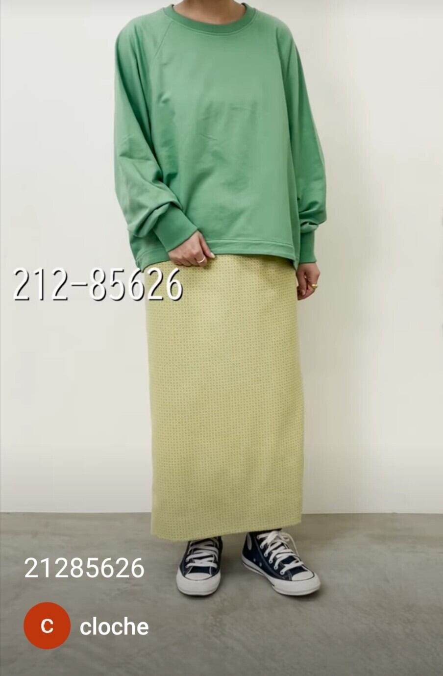 クロッシェらしいスマートなロゴ、裾にダーツをいれて腰周りがしっかり抑えられていてカジュアルなのに大人っぽい着こなしになりますよ。
