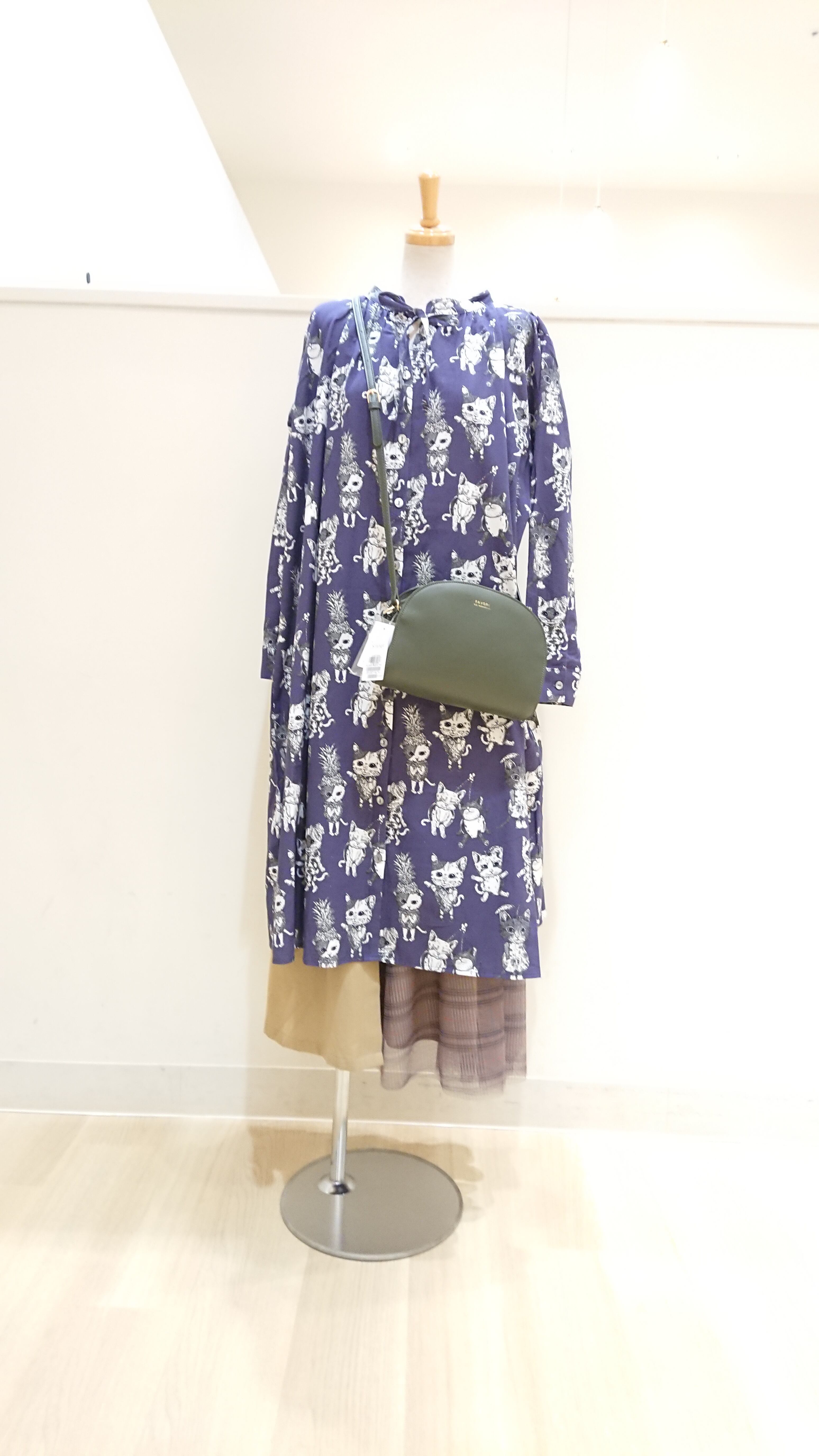 SCOLAR フルーツネコ柄シャツワンピース