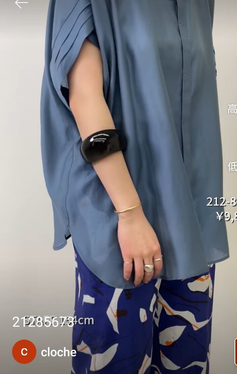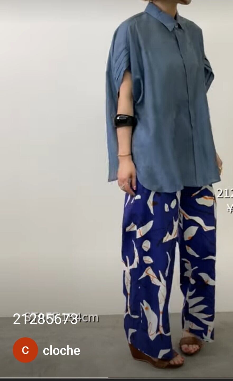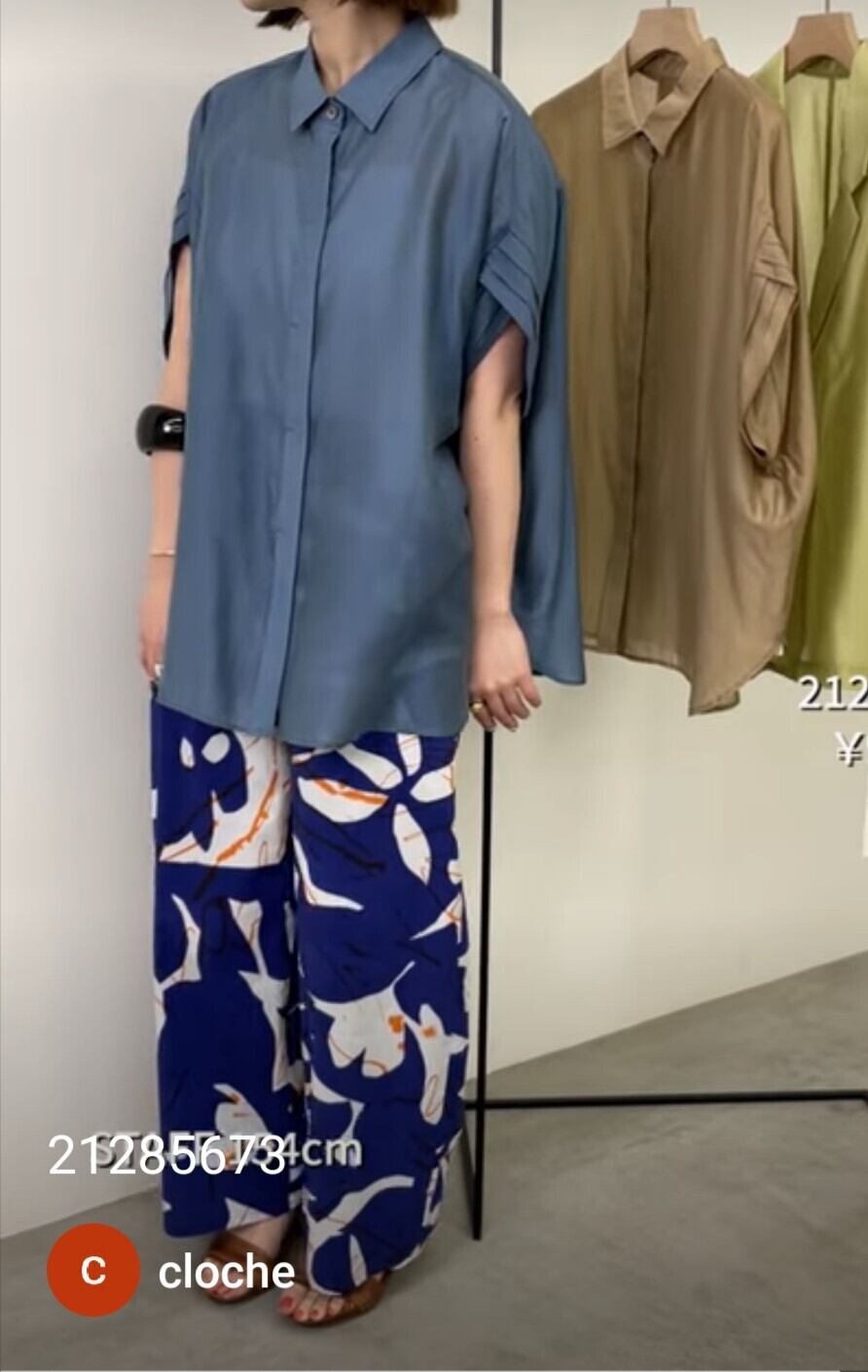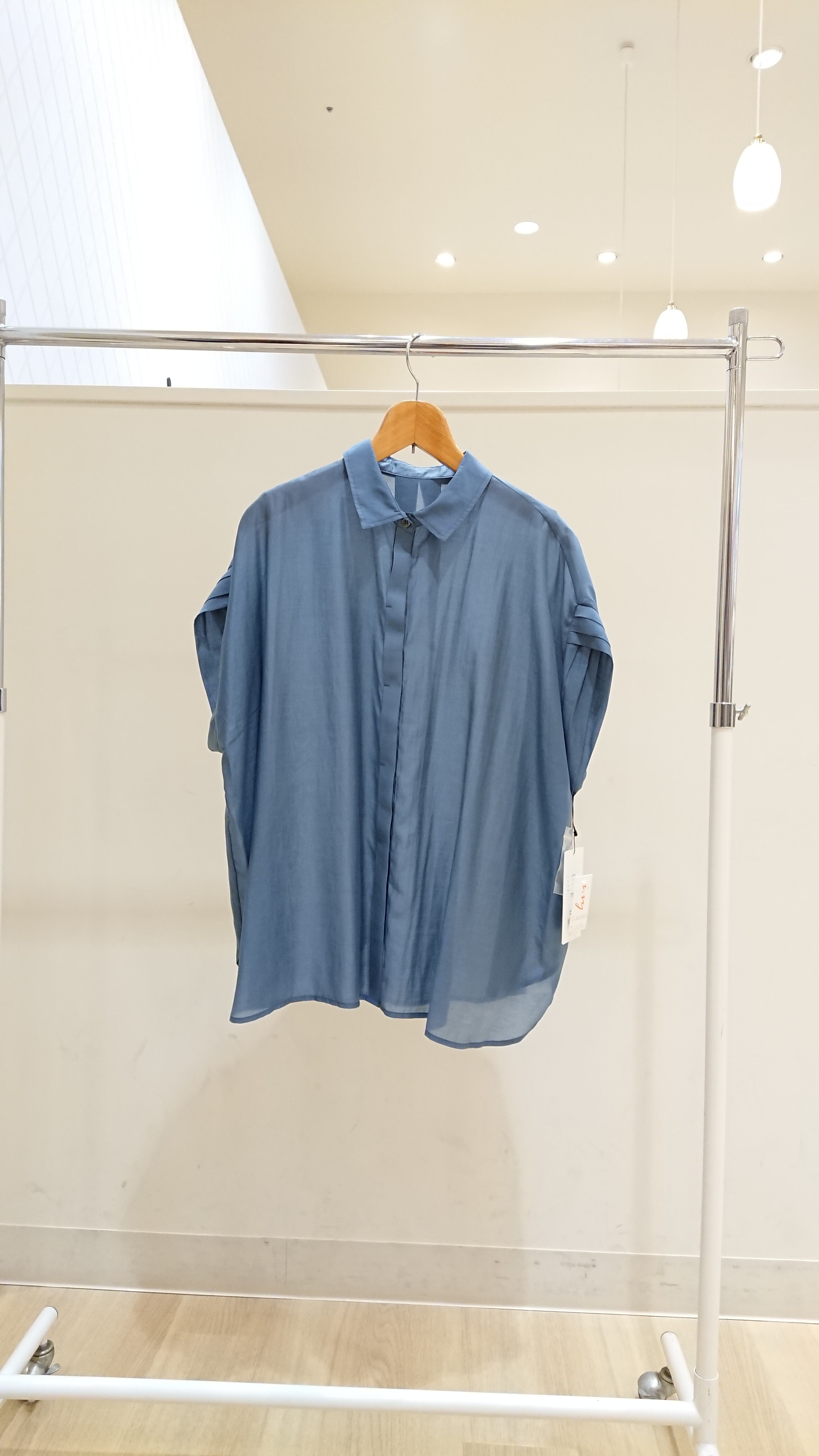 光沢のあるセルロース素材を使ったシアーブラウス。オーバーサイズのデザインながらセルロースのドレープ感がすっきりしたラインと程よい動きを出してくれます!